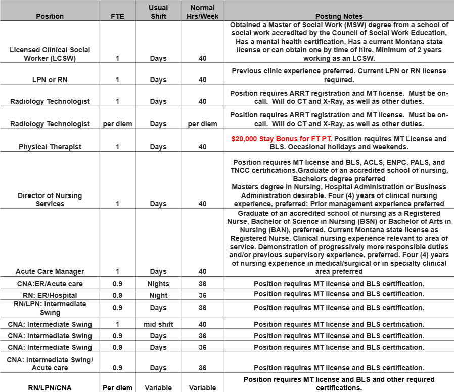 There are many exciting opportunities at Roundup Memorial Healthcare. We