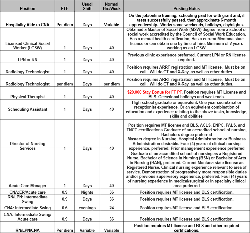 at the hospital at 1202 3rd St. W., or e-mail a resume and the application form to RBrewer2@rmhmt.org. Or, it can be faxed to (406) 323-3681. M/F disabled and VET EEO/AA Employer.